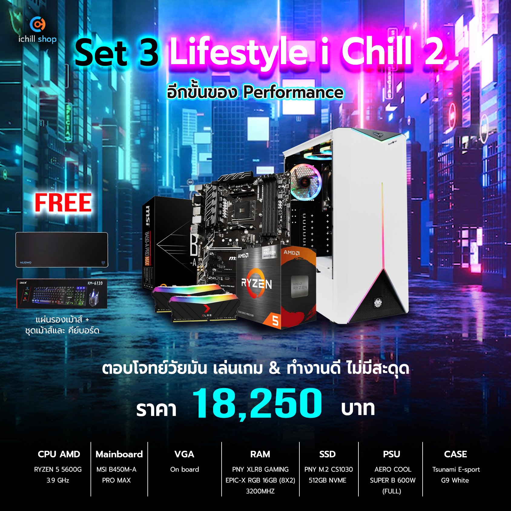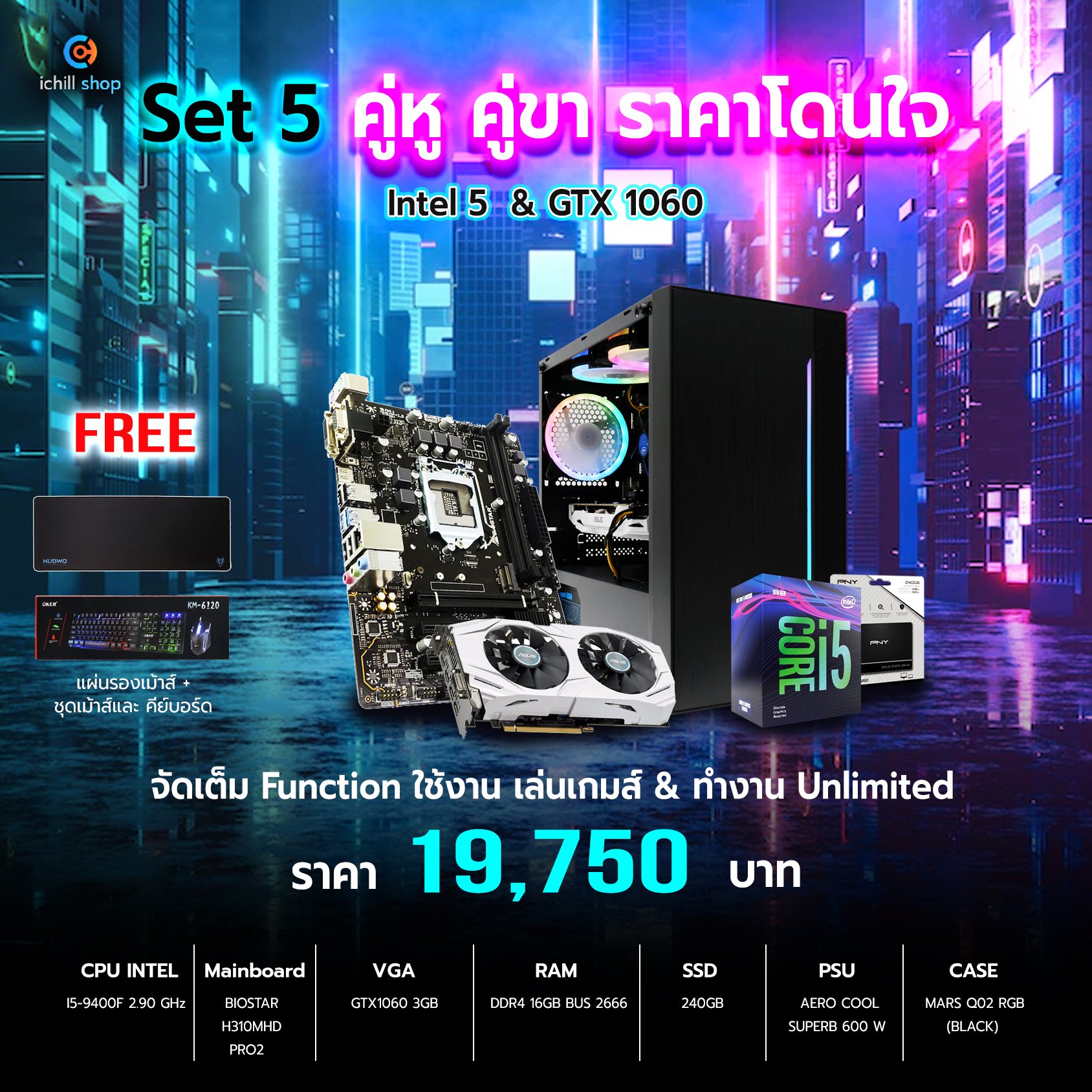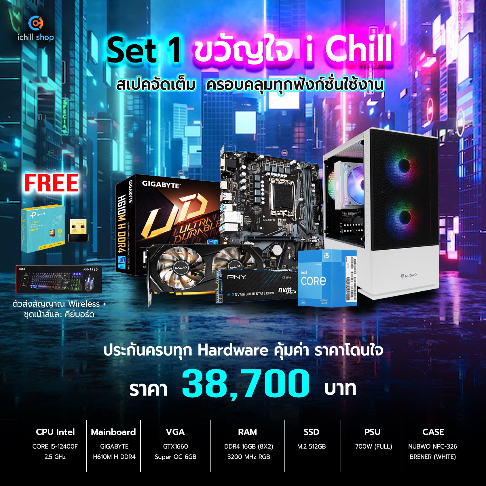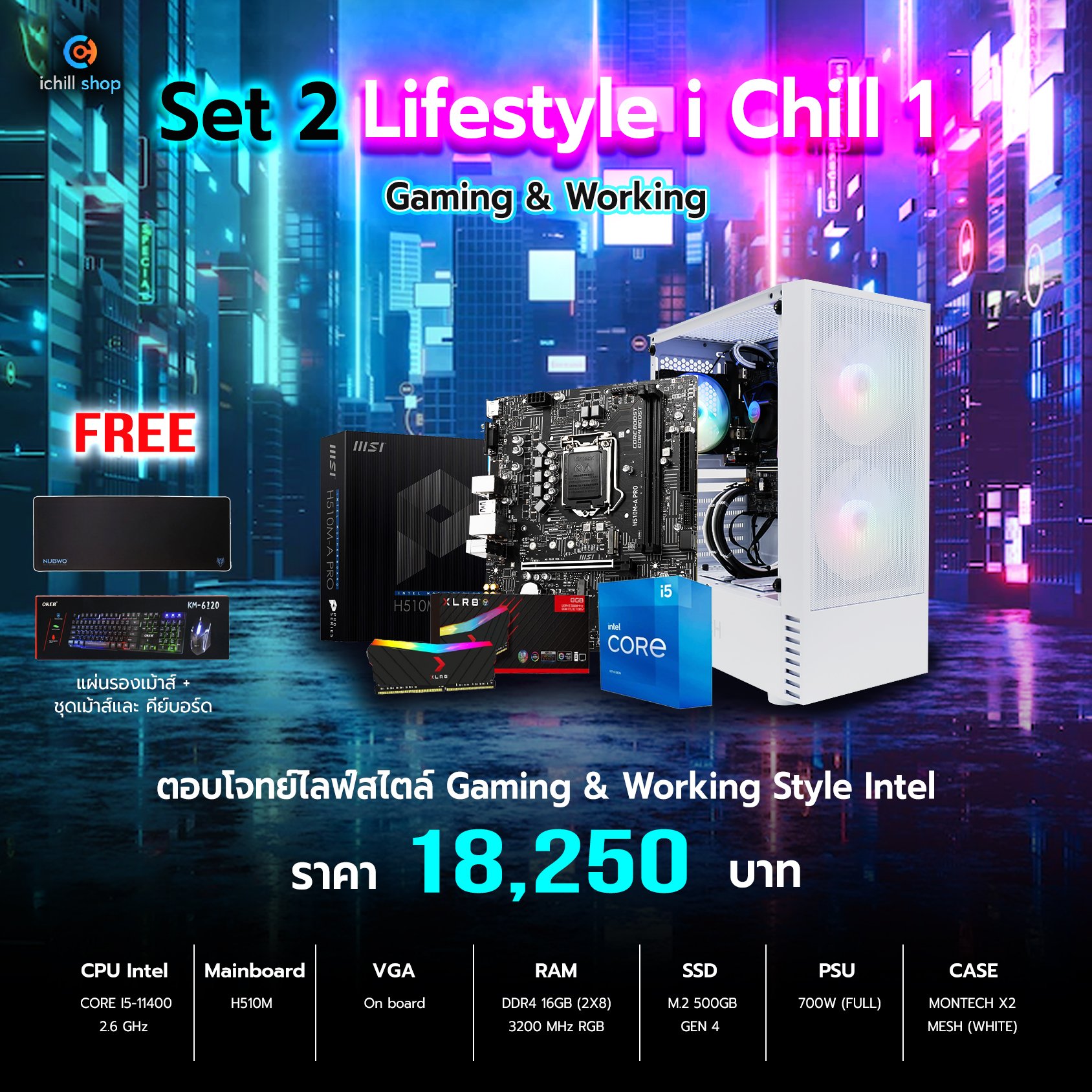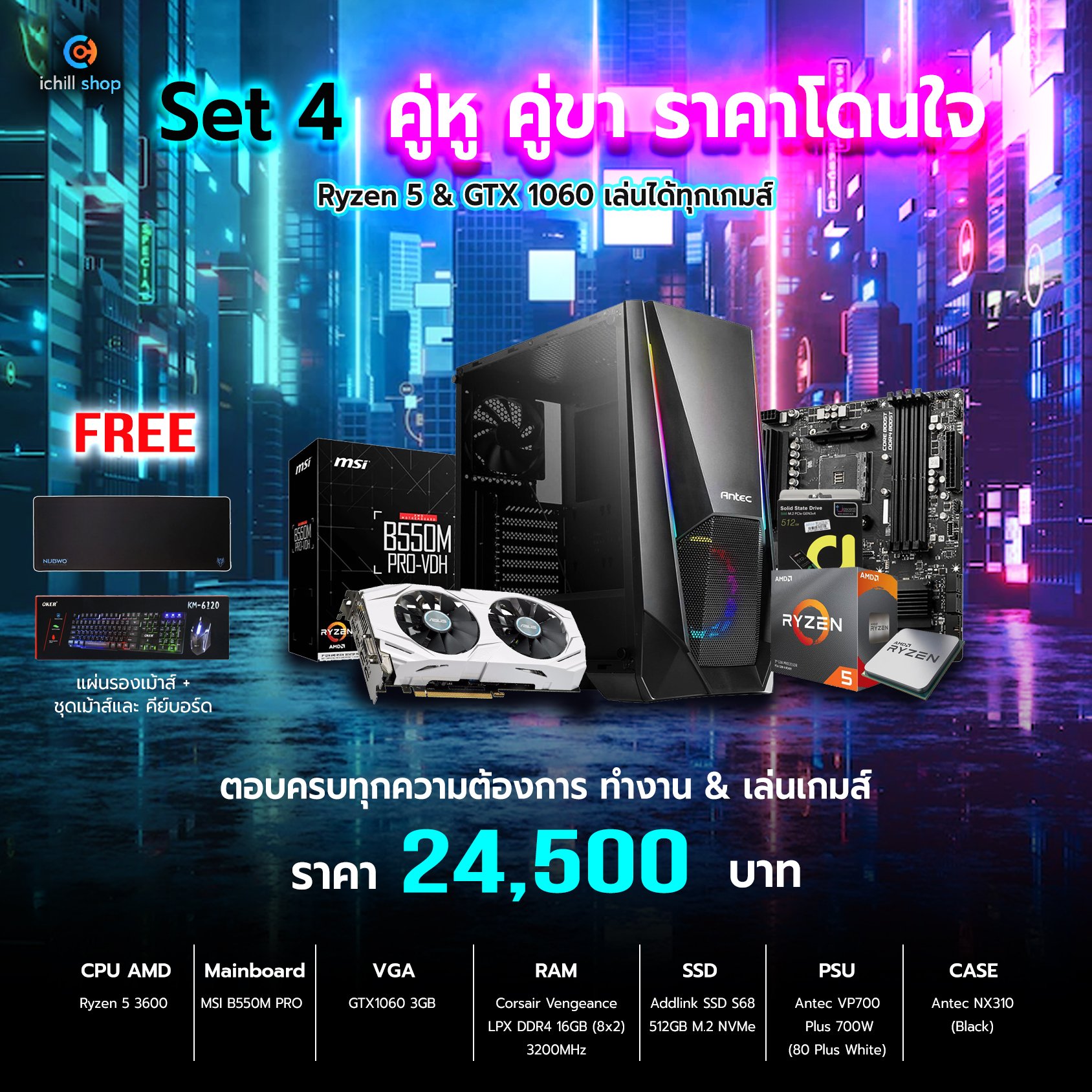 - ซื้อคอมประกอบ ตั้งแต่ 30,000 ขึ้นไป รับ ชุดเม้าส์+คีย์บอร์ด+แผ่นรองเม้าส์ยาว + ตัวรับสัญญาณ WiFi ฟรี!!